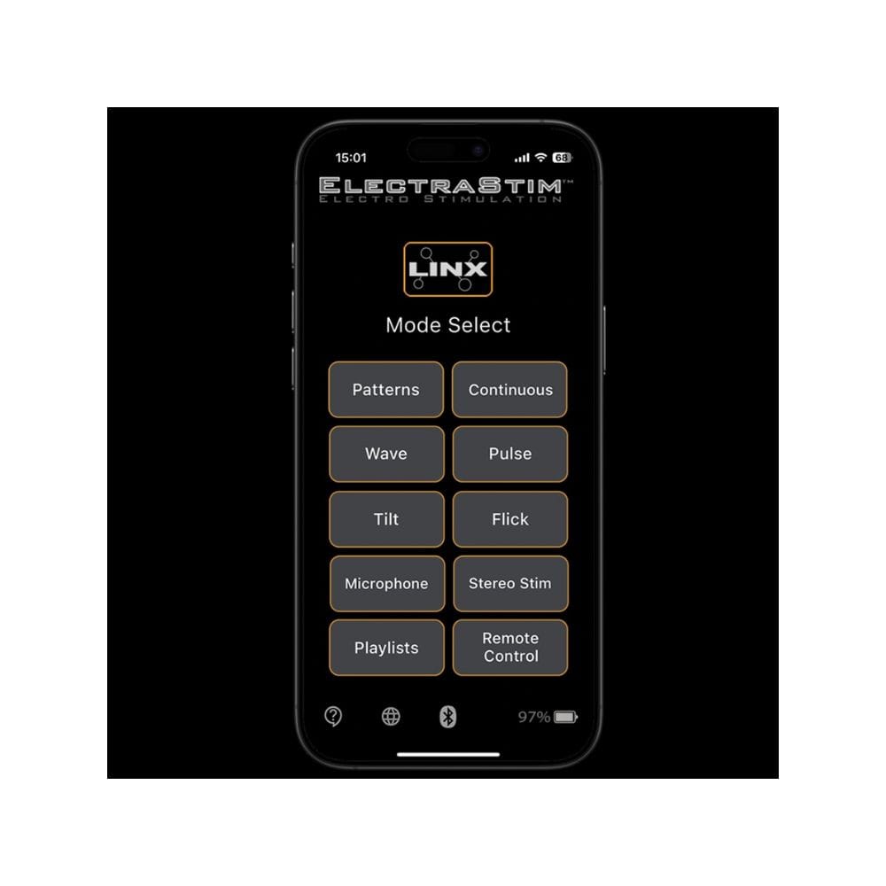Next generation, dual-channel electro stimulator designed for all levels of users seeking powerful, customisable and connected electro play. Featuring all the interactive modes including Tilt, Flick, Microphone and Stereo Stim plus two brand new modes that take e-stim to a new level. Playlist allows users to create fully custom electro session by combining different stimulation ‘snippets’ that you can easily customise. Remote Control mode enables a partner to securely connect and control stimulation in real time through their own app from anywhere in the world! This makes Linx suitable for a wide range of scenarios from long distance relationships to travel or virtual dominatrix sessions.